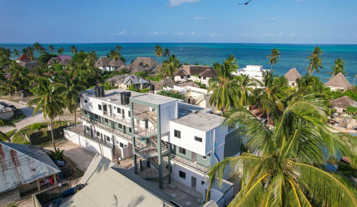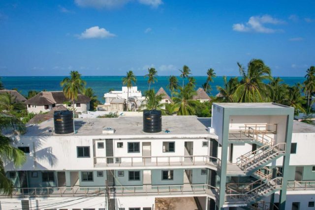 The Area – it is very cosy, one of the most beautiful parts of the gorgeous Jambiani beach. the building features its own pool for the tenants, as well as a restaurant. The base floor units have their own private garden with a plunge pool that is private for the owner of the property. The higher floors offer stunning views of the ocean lagoon in front.